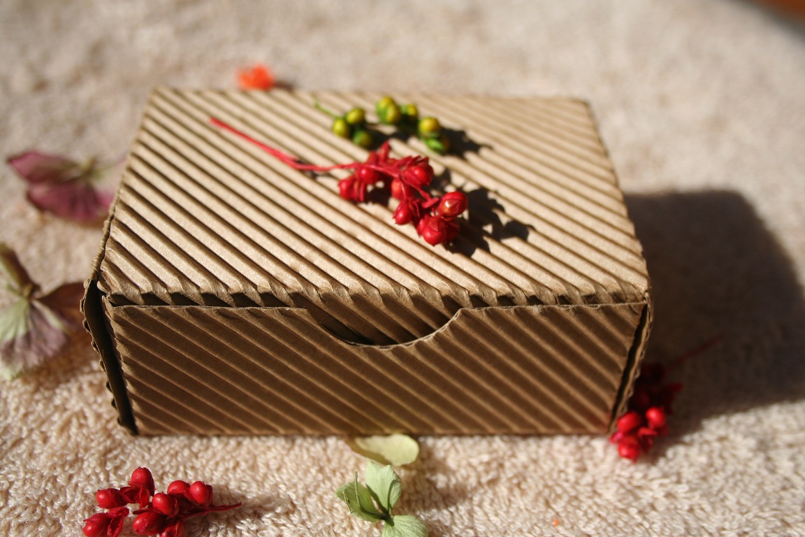 Dárková krabička z vlnité lepenky. Rozměr 90 x 63 x 33 mm