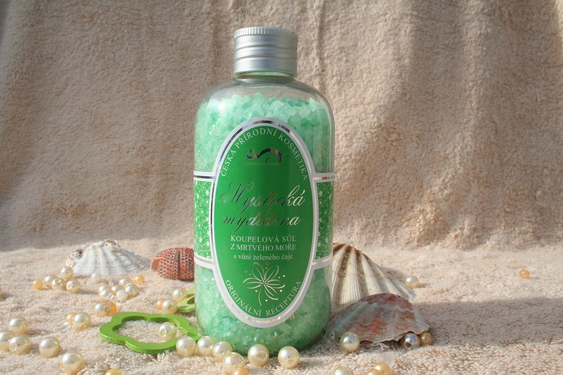 Originální sůl z Mrtvého moře s osvěžující vůní zeleného čaje. Minerální lázeň pro příjemnou domácí relaxaci a pocit svěžesti po koupeli.