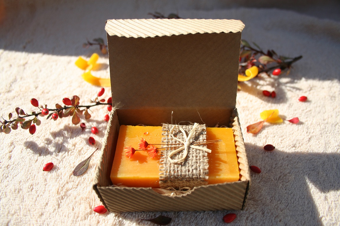 Přírodní olivové mýdlo s červeným palmovým olejem v krabičce