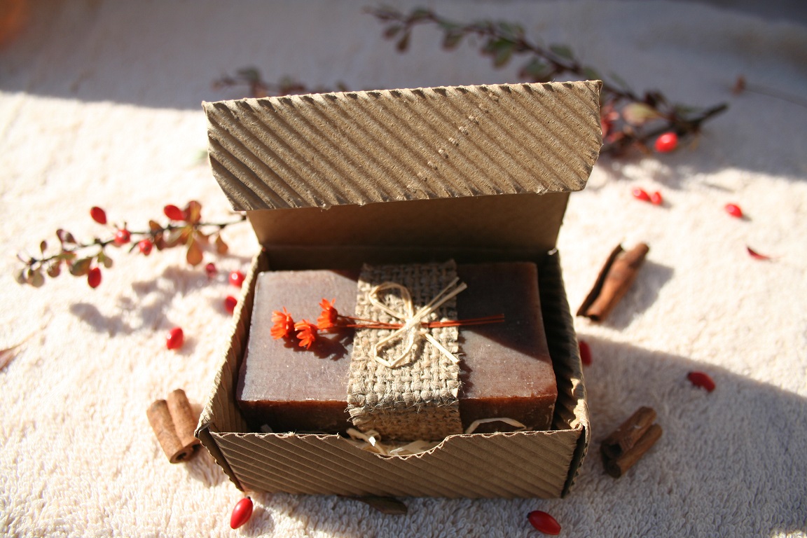 Přírodní olivové mýdlo se skořicí v krabičce