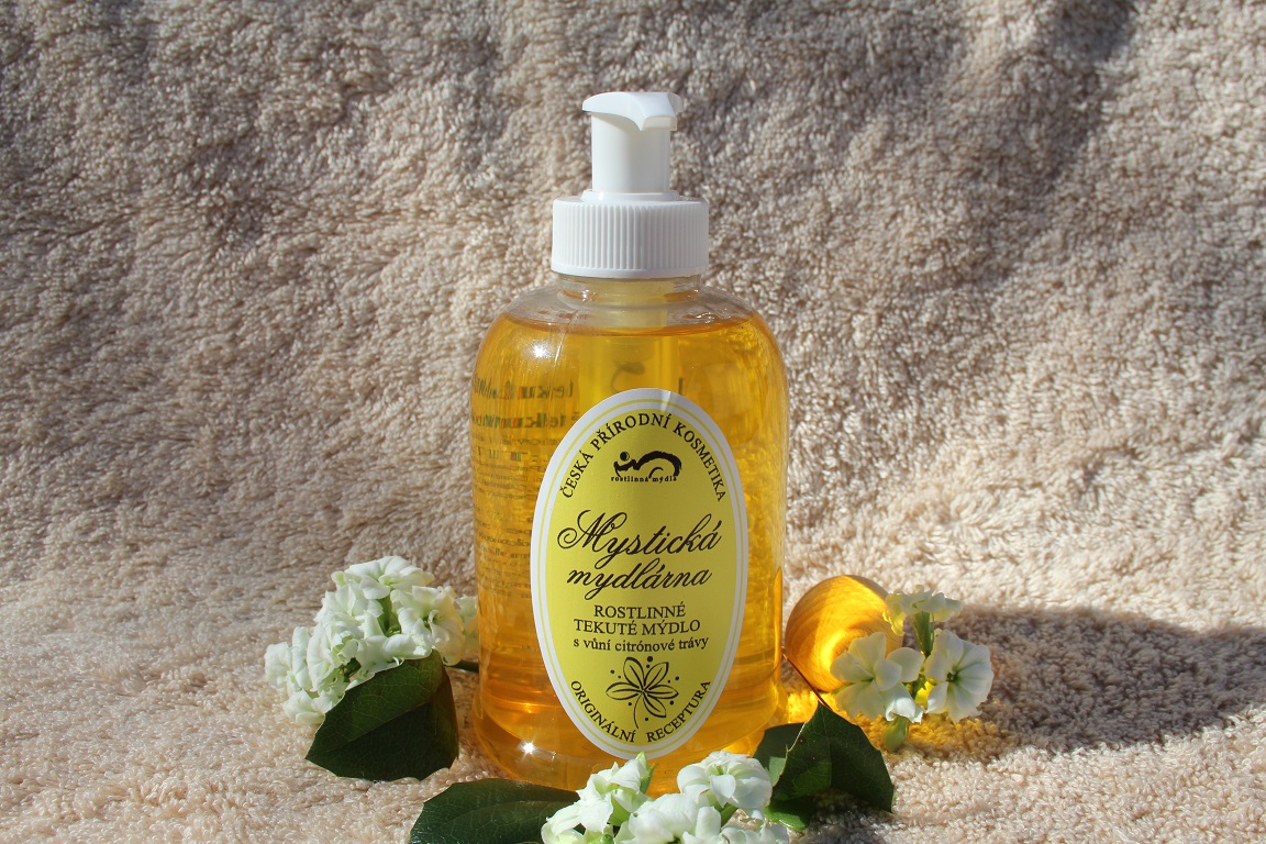 Tekuté mýdlo s osvěžující vůní citrónové trávy. Lze používat jako mýdlo na ruce nebo jako sprchový gel na celé tělo.